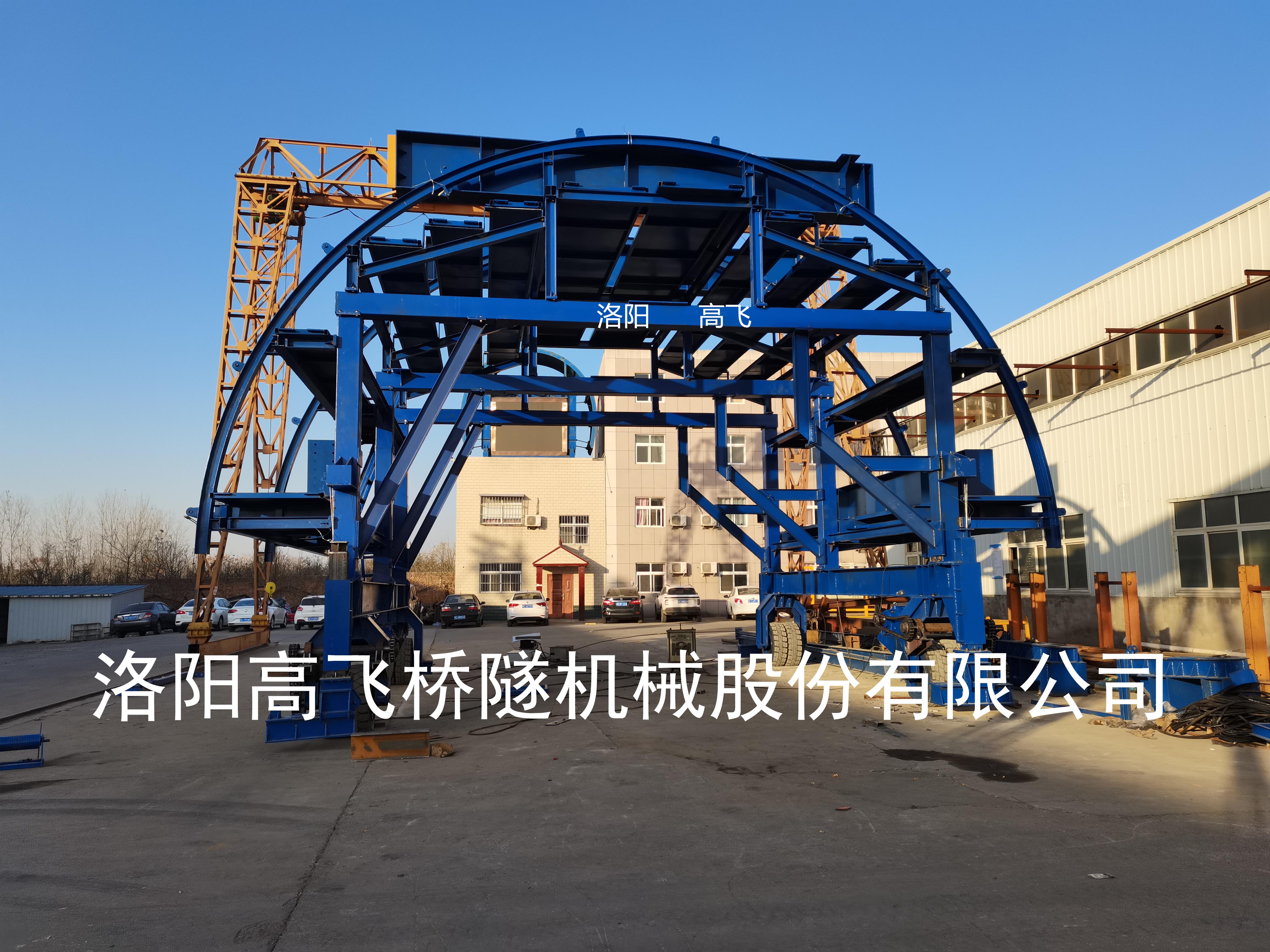 簡介∶防水板自動鋪掛臺車,包括門型架、拱形軌道和掛布機械裝置;操作平臺通過液壓油缸伸縮結構,液壓支撐桿和背板組成,用于兩側鋼筋綁扎平臺的伸出和收回,讓兩側平臺近量地伸展到開挖面,便于工人焊接防水板和綁扎鋼筋,有效地提高操作人員安全性,減少勞動強度。