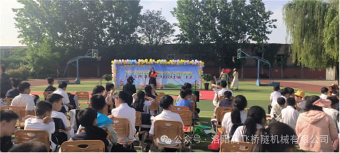 四月,春暖花開,萬物復蘇, 西工區張嶺小學的大馬士革玫瑰花香飄滿了整個校園,在這樣一個生機勃勃的季節里,張嶺小學舉辦了玫瑰飄香閱讀節活動,洛陽高飛橋隧機械股份有限公司也有幸參加了本次活動。經史子集,傳承中華文脈;詩詞曲賦,浸染沁人書香。張嶺社區副書記和張嶺小學的校長在大會上做了精彩致辭并宣布閱讀節活動開始。